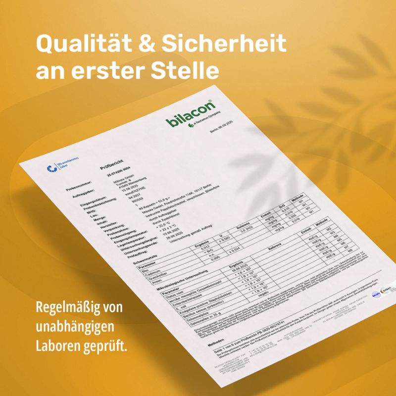 Die angegebene empfohlene tägliche Verzehrmenge darf nicht überschritten werden. Nahrungsergänzungsmittel sind kein Ersatz für eine abwechslungsreiche und ausgewogene Ernährung.